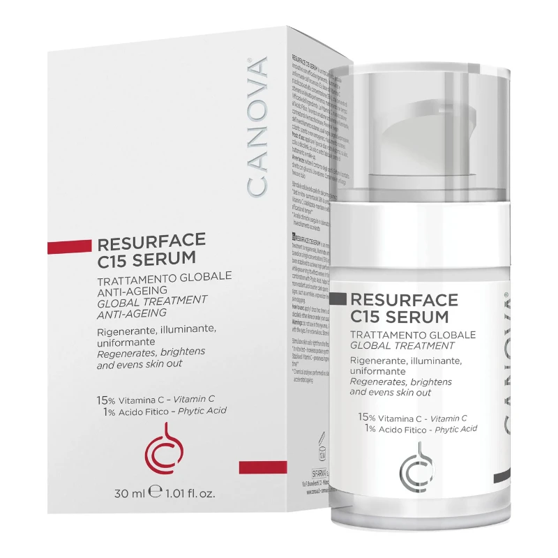 Trattamento pelle ad azione rigenerante, illuminante, uniformante, a base di Vitamina C stabilizzata al 15%, in associazione con Acido Lipoico, Carnosina e Acido Fitico. Contrasta i segni dell’invecchiamento cutaneo, come rughe, linee di espressione, tono della pelle non uniforme, rilassamento cutaneo. Aiuta a illuminare la pelle, renderla più luminosa e giovane. L’azione della vitamina C stabilizzata, rimane più efficace a lungo nel tempo.