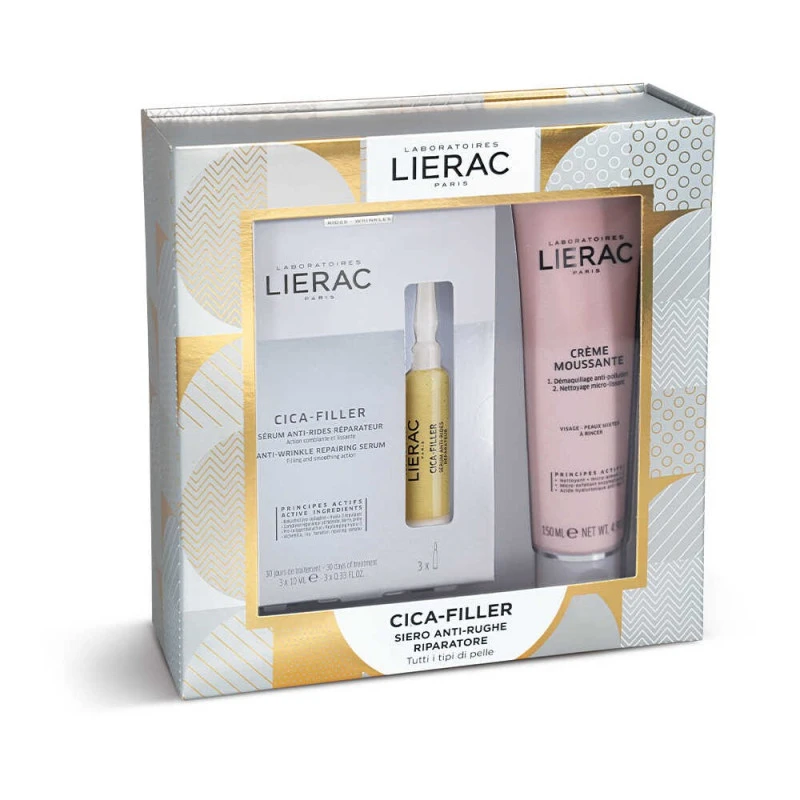 Elegante cofanetto di Lierac “Cica-Filler” ideale per contrastare gli inestetismi legati all’invecchiamento come rughe e solchi sul viso. Edizione Natale 2020.
